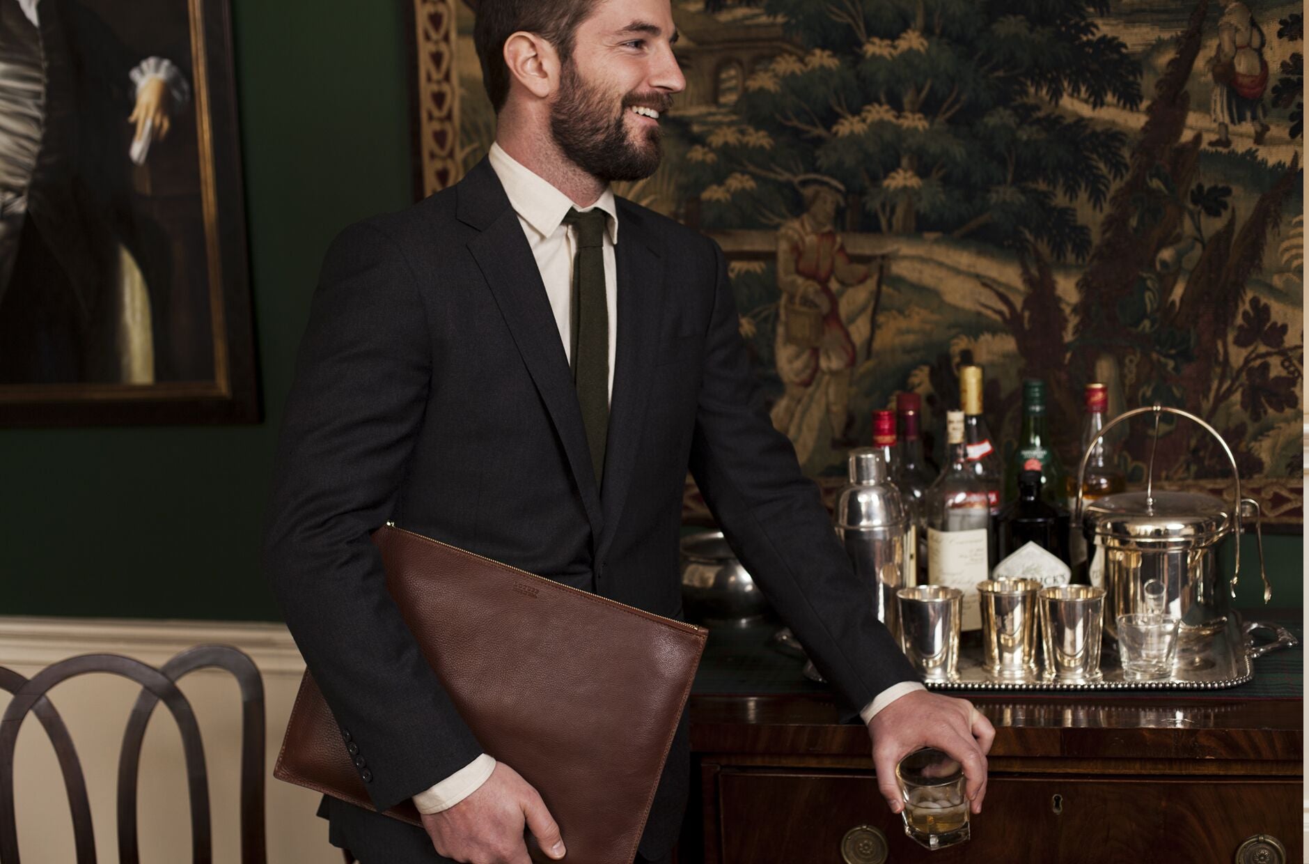 There we put our bags in the hands of the gentleman and the adventurer. Our duffles, briefcases, and portfolios prepare the gentleman for his drive from the country to the city, and our totes are the essential for when he returns for his days of leisure and recreation in the field.